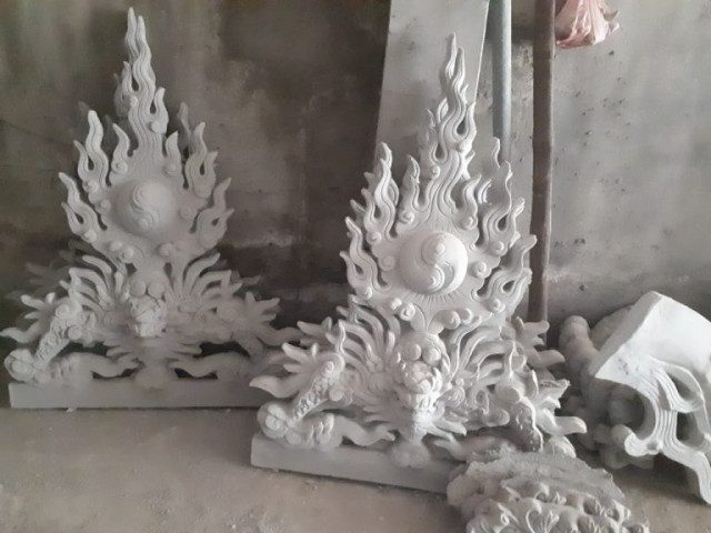 - Phù điêu xi măng đúc sẵn theo khuôn, kích thước để định hình thành những phù điêu mong muốn.