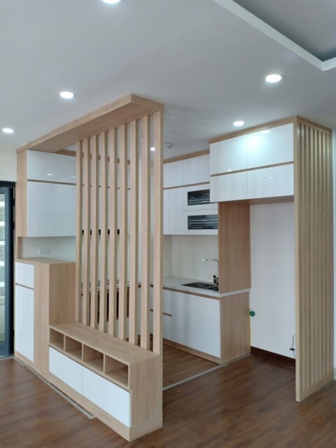 - Vách ngăn gỗ: Vách ngăn gỗ mang lại vẻ đẹp tự nhiên và cảm giác ấm cúng cho phòng bếp. Gỗ có thể được sử dụng trong các dạng tấm hoặc bức bình thường, hoặc trong dạng ván ép hoặc ván MDF để tạo ra các thiết kế phức tạp hơn.