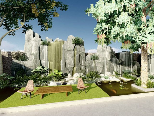 Thiết kế núi nhân tạo, hòn non bộ cùng cây xanh