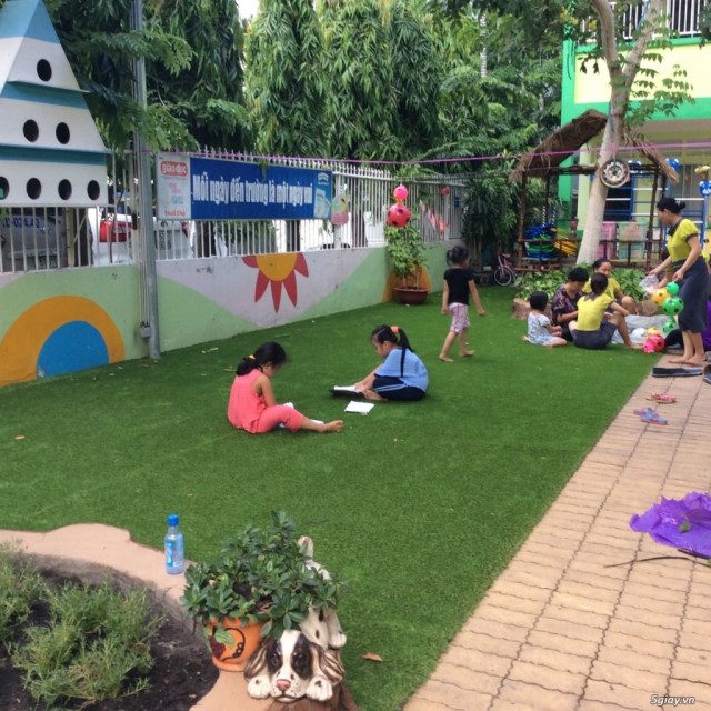 Tất cả tạo nên một sản phẩm vô cùng đẹp mắt cho bé. vườn cổ tích mầm non được thiết kế với các loại cây, loại cỏ. Có thể là cỏ nhân tạo hay cỏ thật.