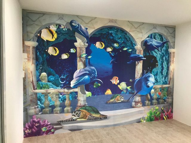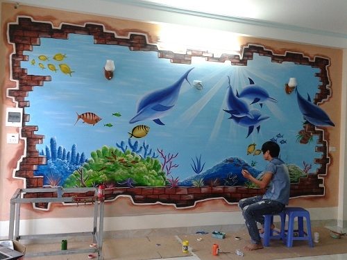 Tranh vẽ trên tường 3d về thế giói đại dương biển cả thêm xinh nhất.
