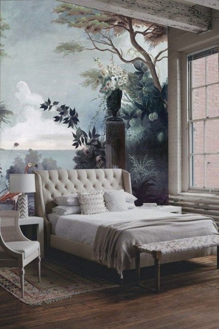 Vẽ tranh tường phòng khách đẹp với bức tranh về thiên nhiên thơ mộng