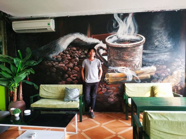 Xu hướng trang trí quán cafe với các mẫu tranh vẽ trên tường với sắc màu thêm xinh và ấn tượng hơn.